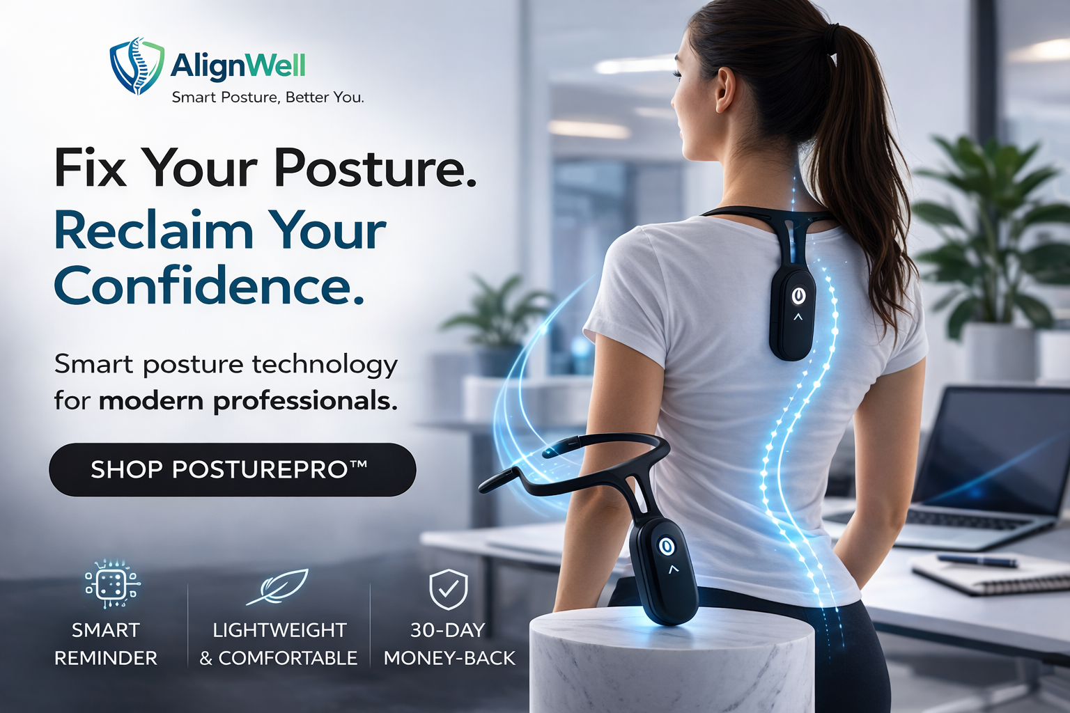 PosturePro™ gently vibrates when it detects slouching, helping you build better posture habits naturally.